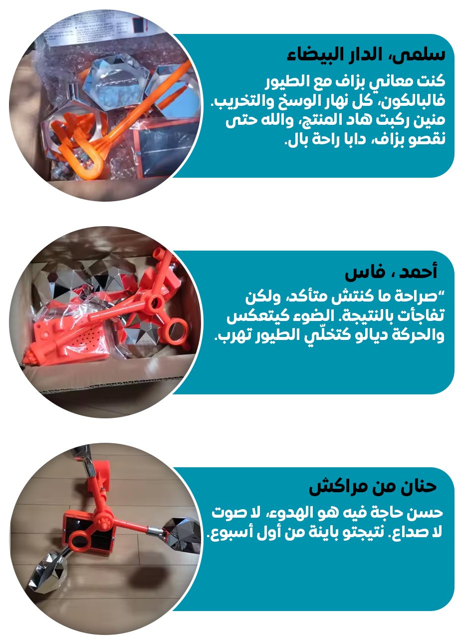 ودّع الطيور المزعجة نهائيًا! حل ذكي وحديث لساحاتك وحدائقك تغطية °360 الحركة الدائرية تعزز التشتت البصري